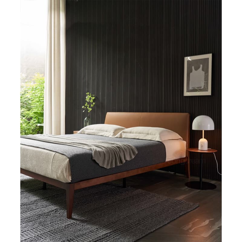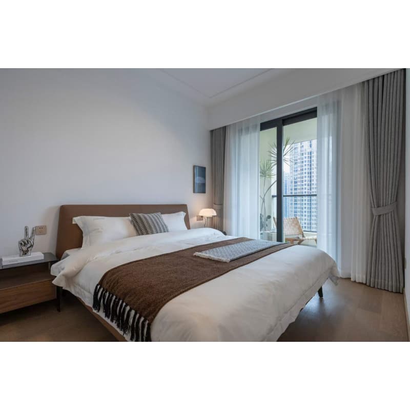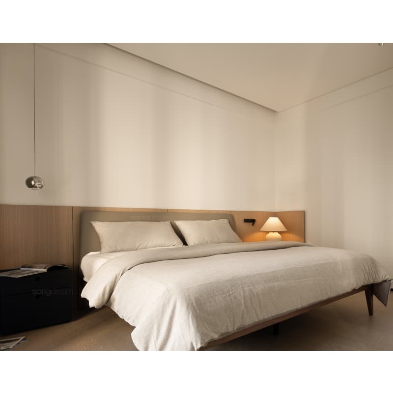 长辈房的不二之选,实木和真皮的结合,简单大方,方便打理